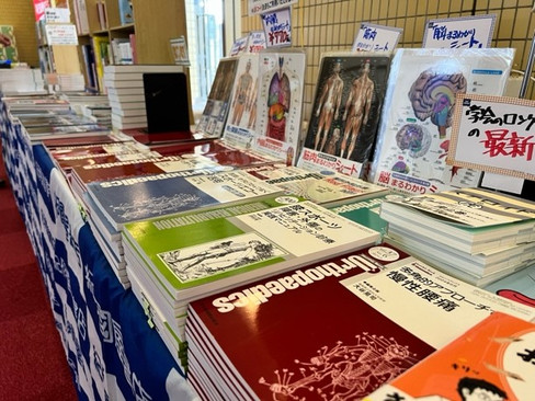 また会場には腫瘍用人工関節をはじめとした各メーカーのインプラント展示や教科書展示もありました. ちょうど週明けに腫瘍用人工関節の手術が控えていたこともあり, 斉藤先生が熱心にメーカーさんと話していたのが印象的でした.